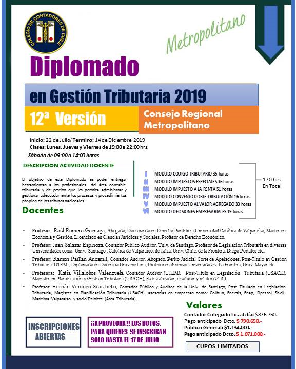 "> DIPLOMADO EN GESTIÓN TRIBUTARIA 2019 | Colegio de Contadores de Chile Regional Metropolitano