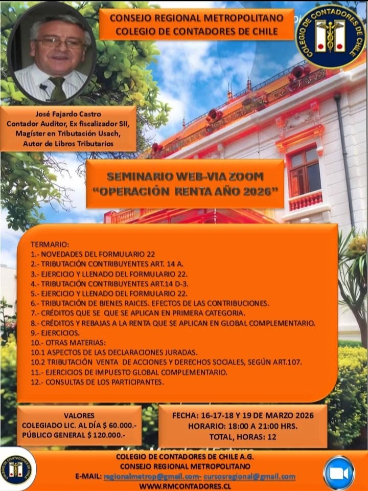"> Seminario online -Operación Renta 2026- | Colegio de Contadores de Chile Regional Metropolitano